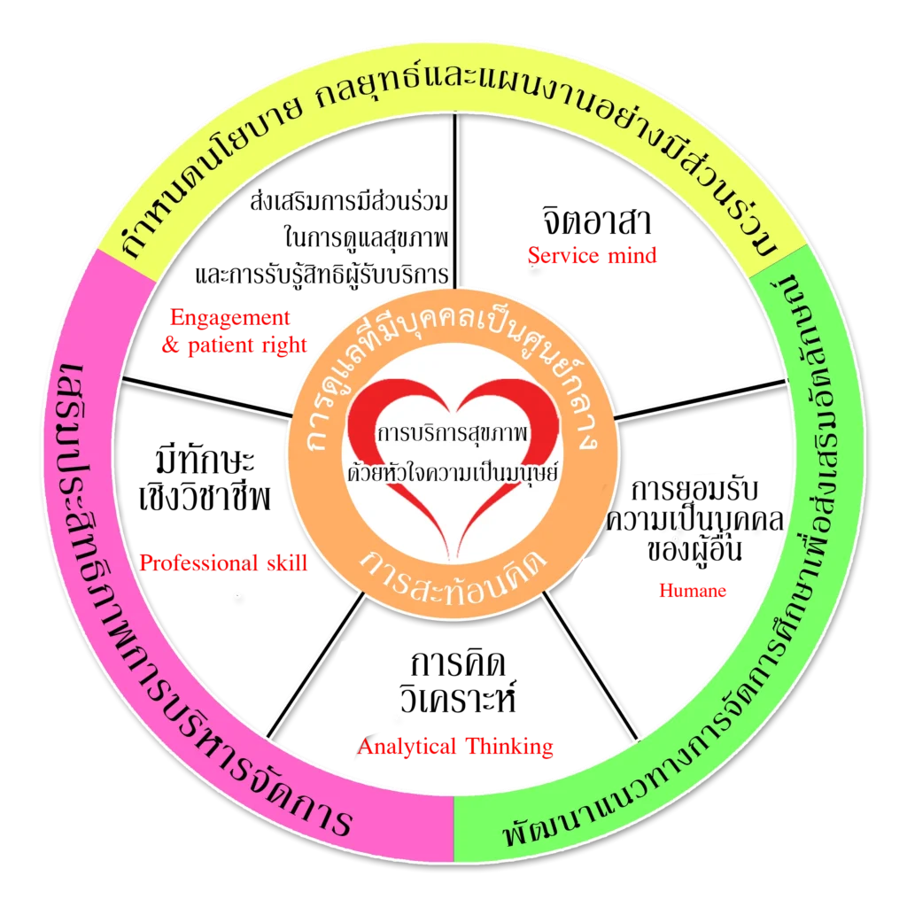 บริการสุขภาพด้วยหัวใจความเป็นมนุษย์ โดยยึดมั่นประโยชน์เพื่อนมนุษย์เป็นกิจที่หนึ่ง